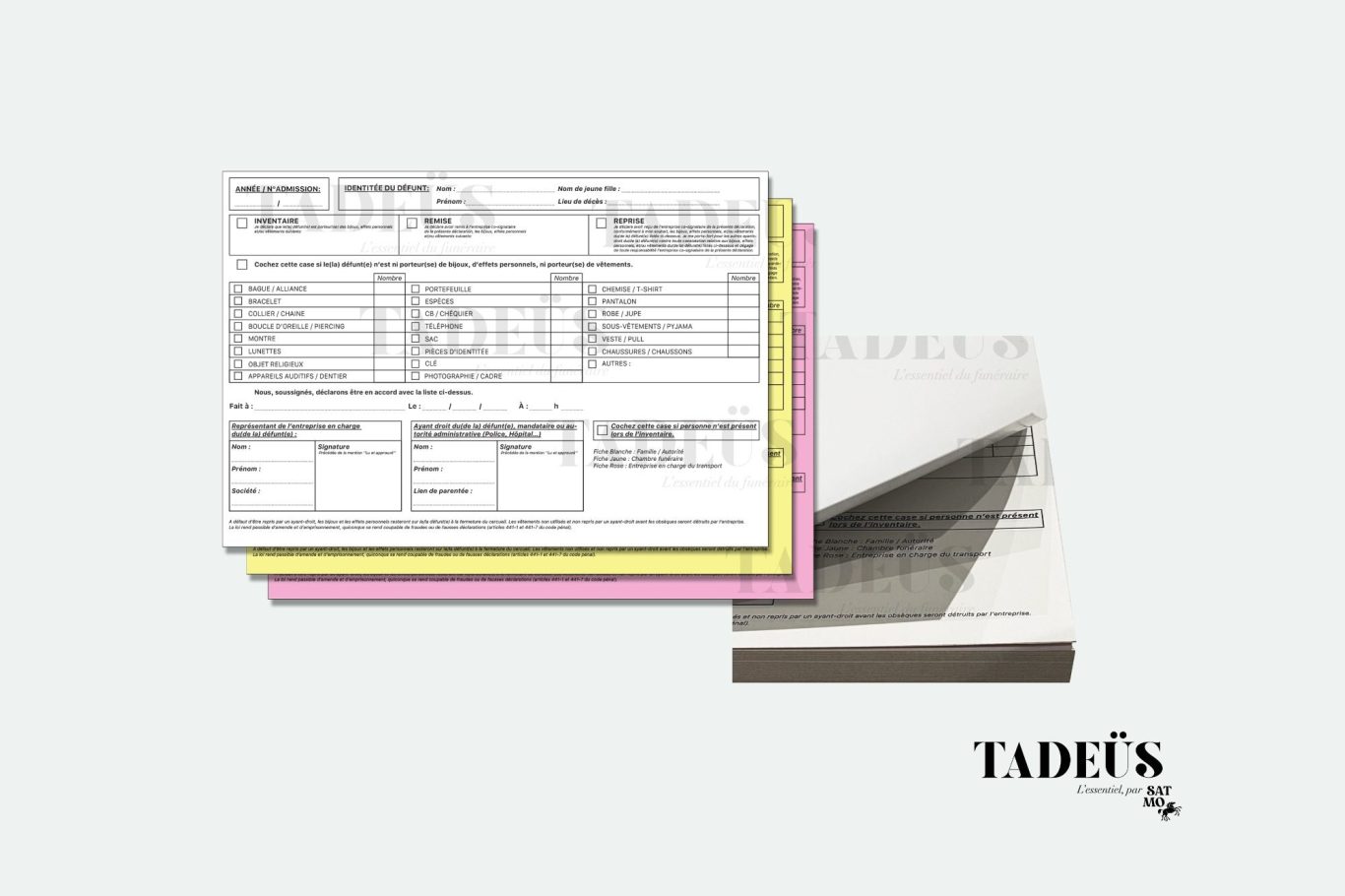Bientôt disponible pour funérariums avec dernier feuillet pour l'établissement d'admission.